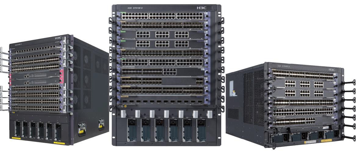 H3C S7500E-X 系列包括S7510E-X、S7508E-X、S7506E-X 3 款產(chǎn)品,所有產(chǎn)品均支持冗余主控。H3C S7500E-X 可廣泛應(yīng)用于城域 網(wǎng)、數(shù)據(jù)中心、園區(qū)網(wǎng)核心和匯聚等多種網(wǎng)絡(luò)環(huán)境,為用戶提供了安全交換一體化、有線無線一體化行業(yè)解決方案。